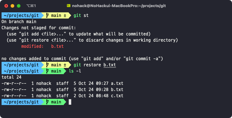 $ git restore <modified 상태인 파일명>